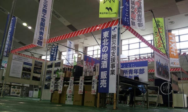 当会三次YEGでは、親会事業への参画だけでなく青年部としてブースを出店し、昨年同様三次YEGと気仙沼YEG(仙台)との連携で、東日本大震災復興支援として東北の地酒を販売しました。