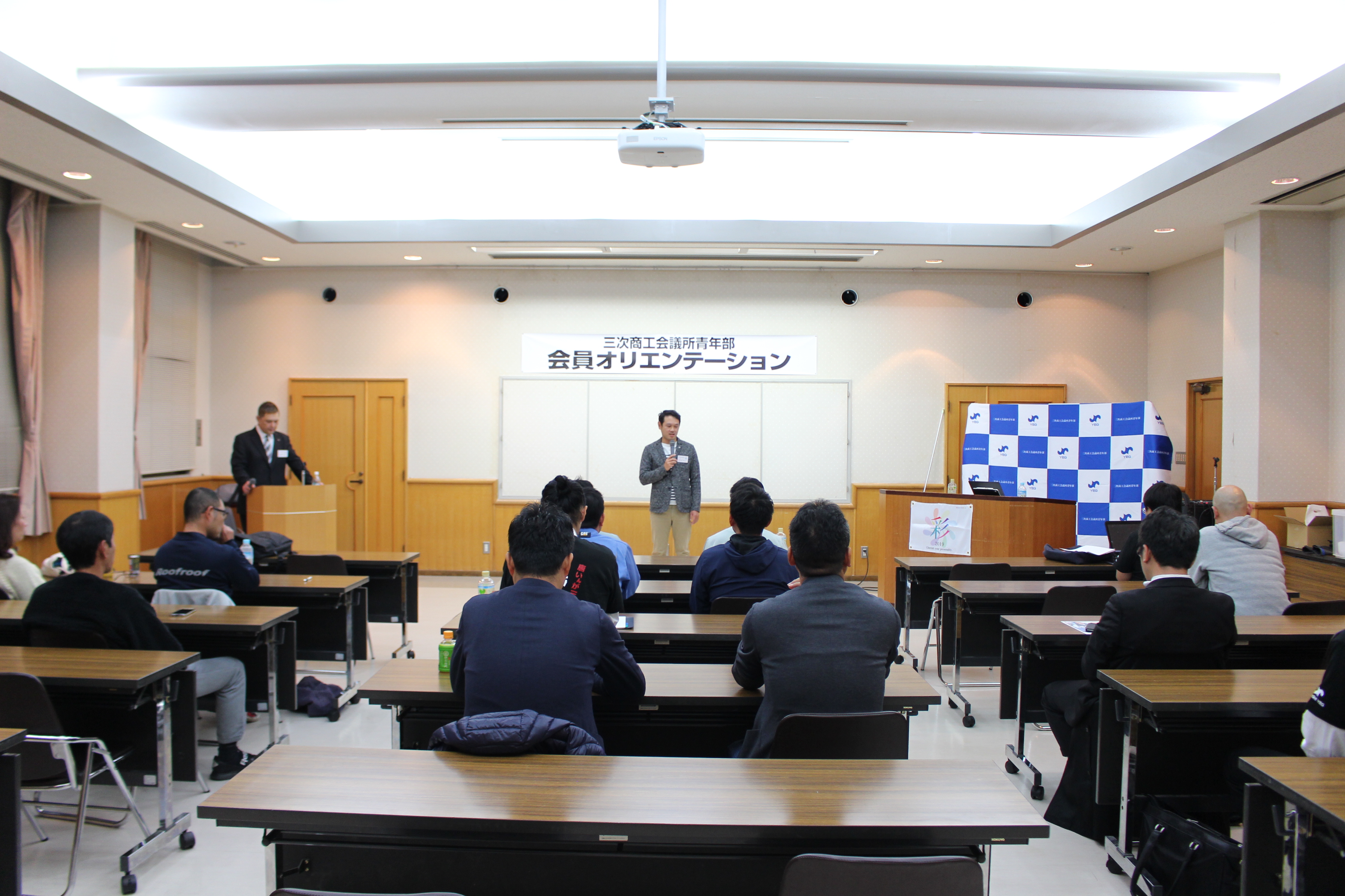 三次商工会議所にて後期会員オリエンテーションをおこないました。