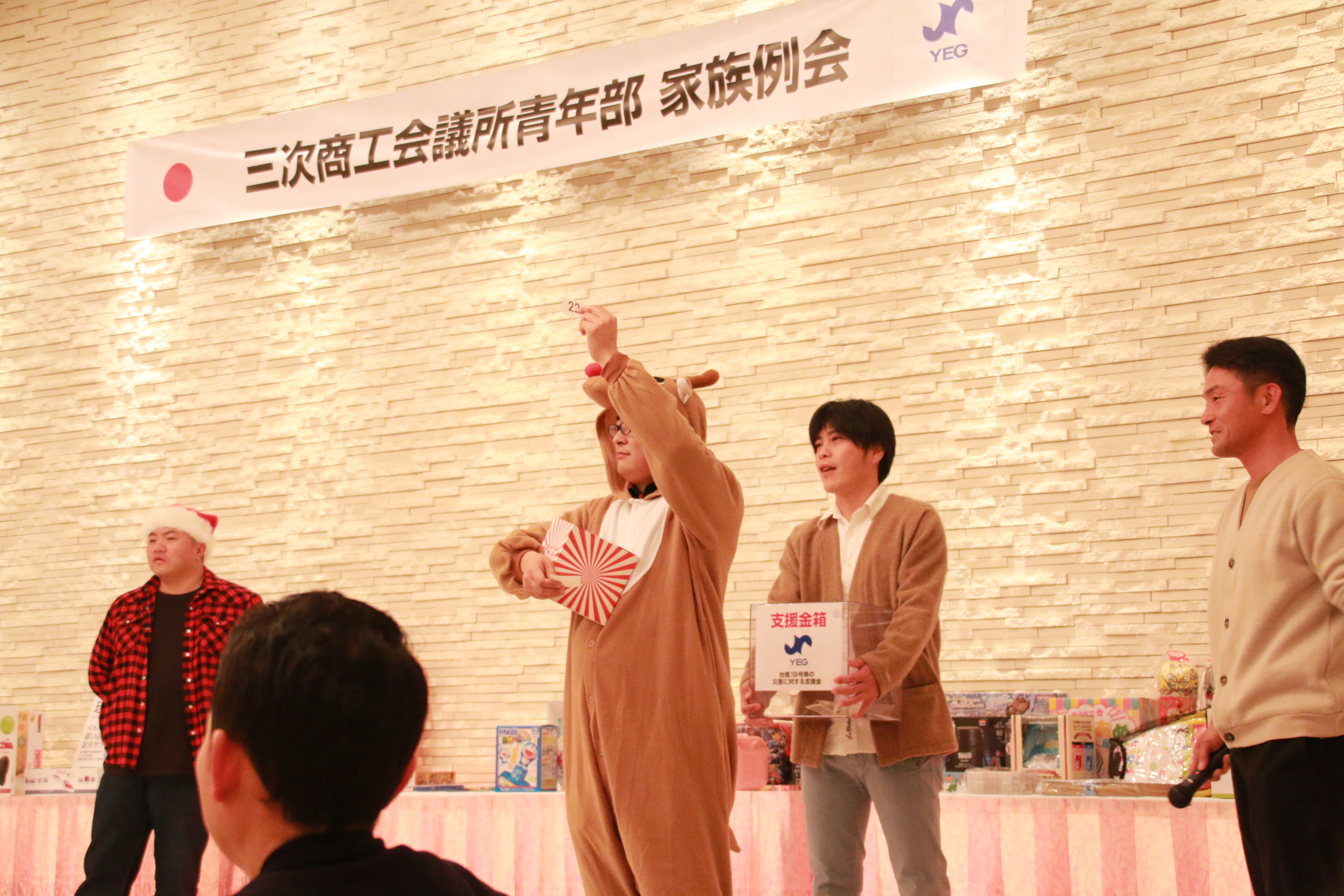 家族例会 交流委員会 2020.02.06 12月21日(土)に、交流委員会担当の家族例会を行いました。 家族例会の主役は、日頃より青年部活動において理解、協力をしてもらっている会員のご家族の皆さんです。 まず初めに、矢谷会長の挨拶から始まり、島原直前会長の乾杯 総勢84名参加での家族例会は、大賑わい。 アトラクションとして、くじ引き大会を行いました。 締めの挨拶は、家族例会担当の島原副会長 最後は全員での記念撮影 今後も青年部活動のご理解・ご協力をよろしくお願いします。 交流委員会委員長 田丸