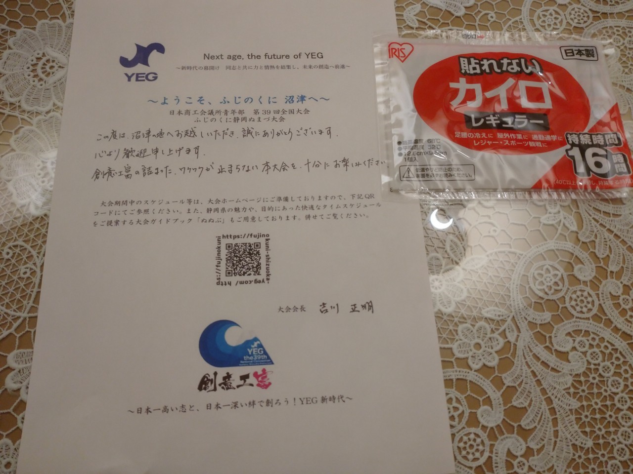 ホテルに入ると、吉川大会会長からのおもてなしがありました。お心遣い頂きまして、