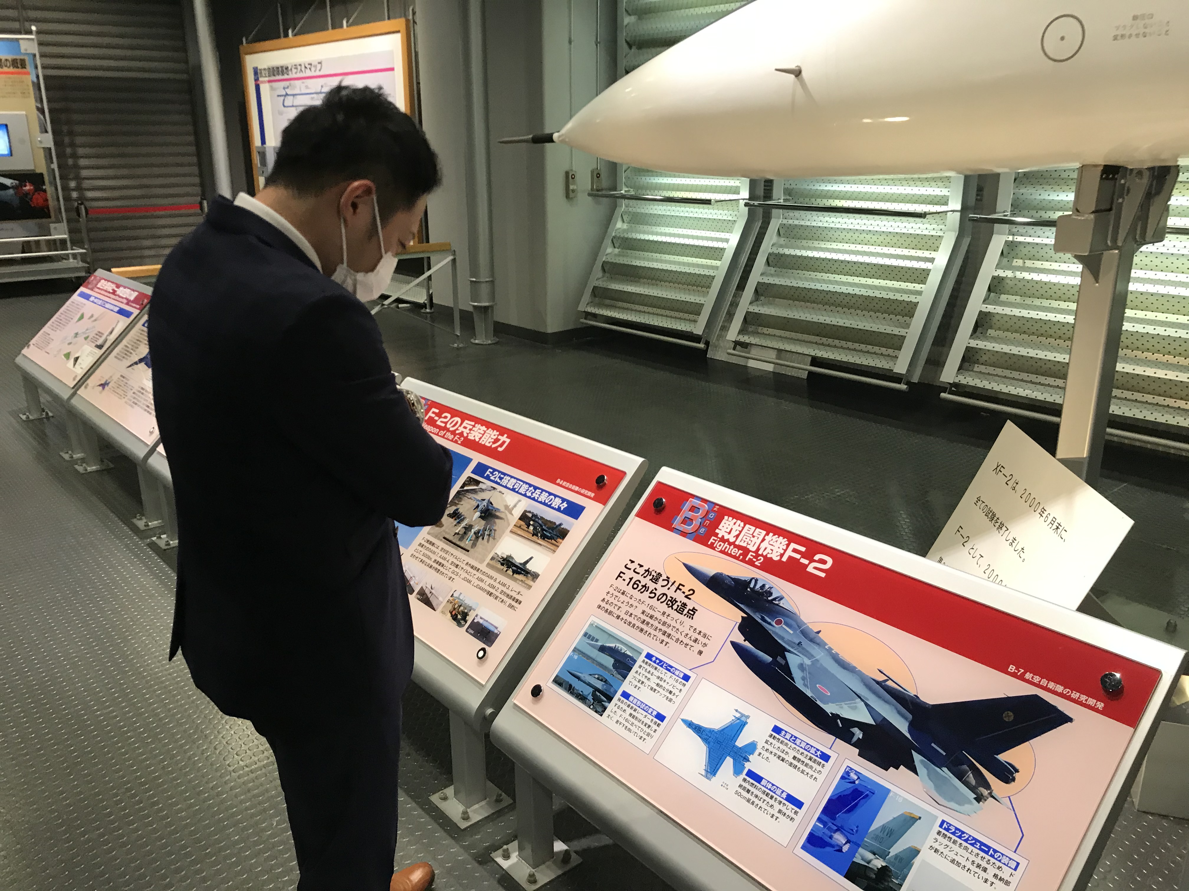 視察研修先は、静岡県浜松市にある、航空自衛隊浜松基地・浜松広報館にさせて頂きました。戦闘機や災害等緊急時に使用する輸送機など、戦時中から現在までの様々な機体などがあり、視察研修を通して、日々日本の国土を守る航空自衛隊を知る貴重な体験になりました。