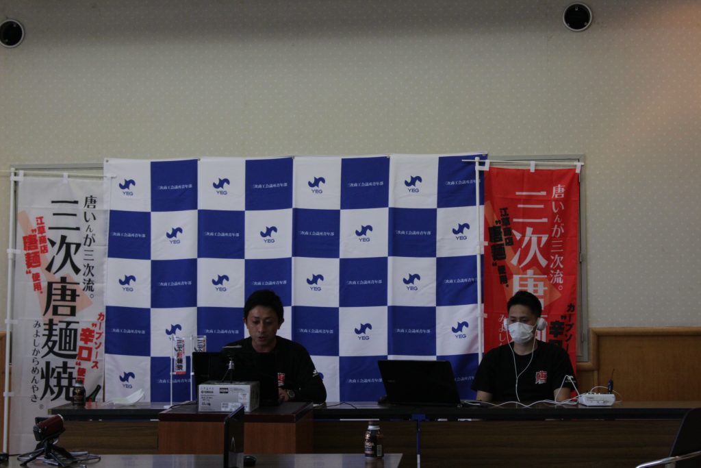 そして、コロナ禍で悪影響を受ける中、どのようにコロナウイルスと向き合って、三次唐麵焼プロジェクトとして活動をしているか現況をお伝えさせて頂きました。
