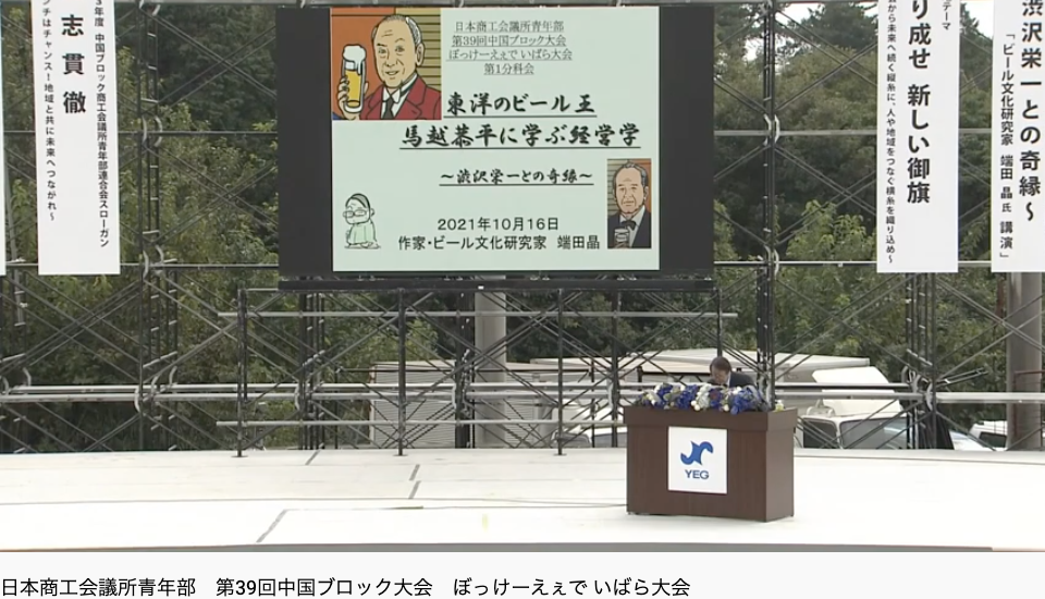 午後からは、オンライン参加の方は、第1分科会「東洋のビール王・馬越恭平に学ぶ経営学 〜渋沢栄一との奇縁〜「ビール文化研究家 端田 晶 氏 講演」を画面越しに聴きました。端田氏の話が面白く、ビールの歴史を通じて、井原出身の馬越恭平、渋沢栄一、社会情勢などを楽しく学べて、有意義なものでした。最後にさすがビール評論家!ビールの注ぎ方「三度注ぎ」を伝授してくださいました☆