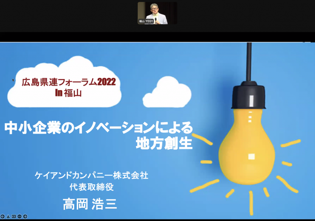 今回は、広島県に新型コロナウイルスまん延防止措置が出ていた為、三次YEGとしてはオンライン参加としました。その為、他の単会との交流は叶わず、①では県連フォーラムの基調講演、②ではオンライン参加が可能な第3分科会のみの参加となりました。